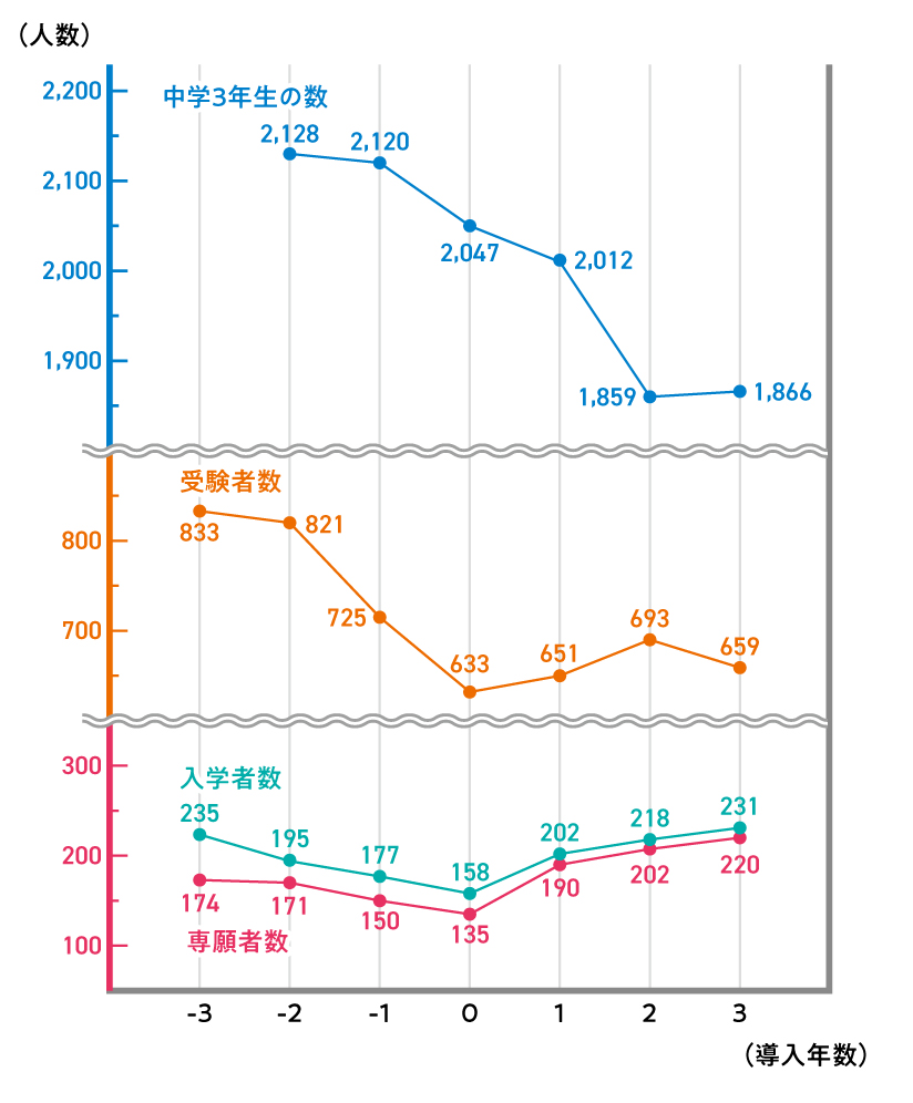 右肩上がりで、着実に入学者数を伸ばしています。