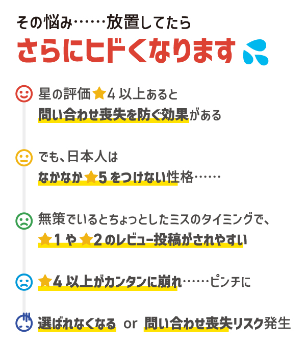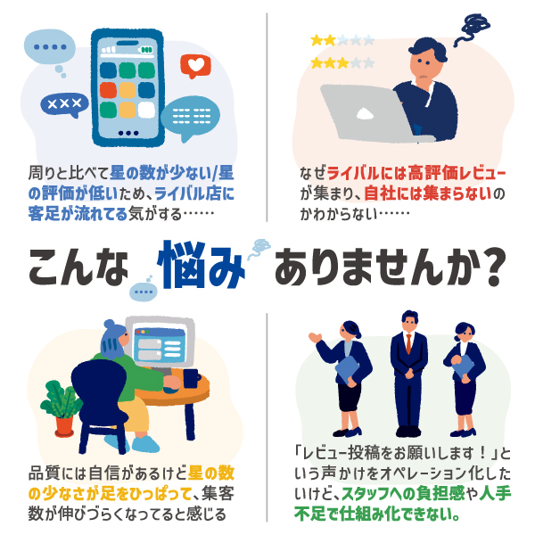 - アンケートの設問によって集客・予約につながりやすいレビューが集まります。